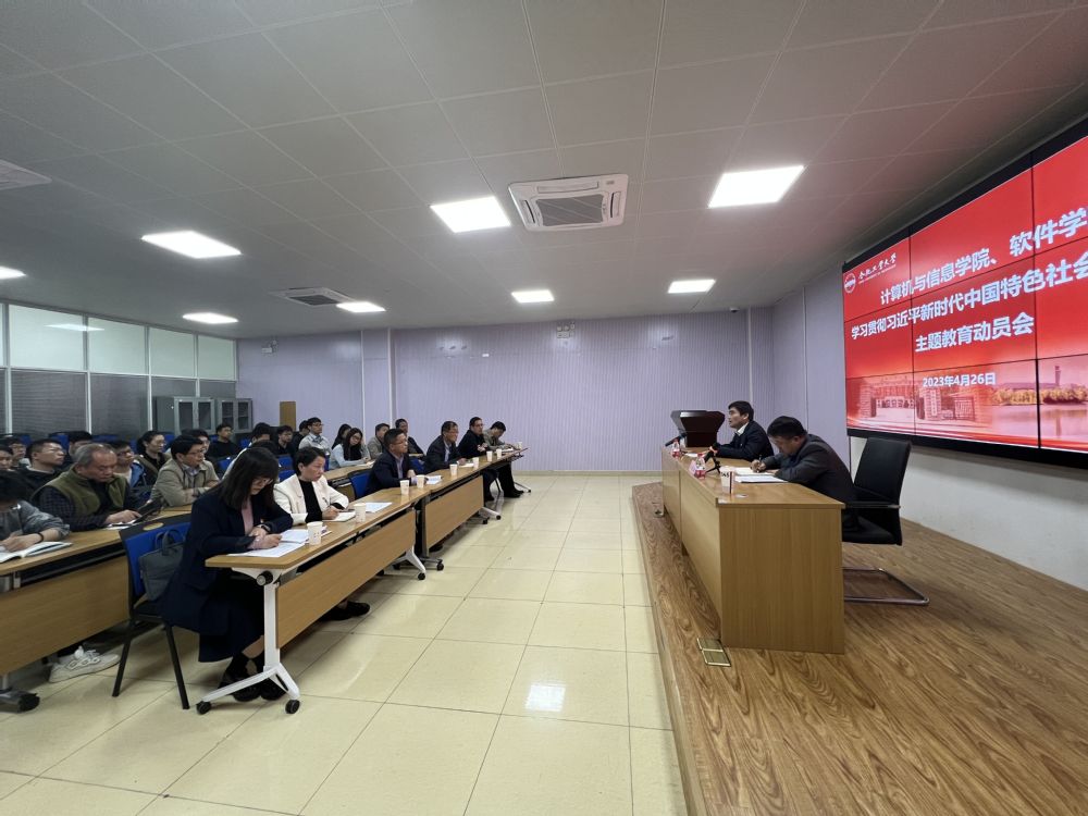 、软件学院学习贯彻习近平新时代中国特色社会主义思想主题教育动员会在翡翠湖校区综合楼多功能厅召开。学校主题教育督查指导组副组长、第二督导组组长严福平出席并作指导讲话,学院党委书记年永琪主持会议。