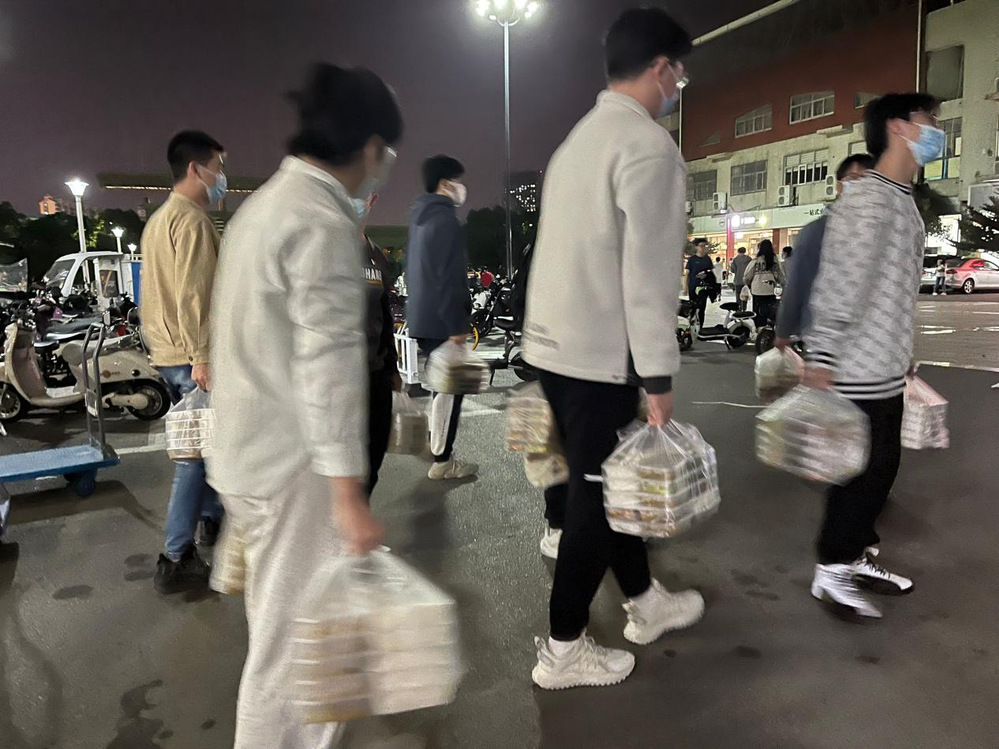 党支部成员每日从一食堂将爱心餐送至翡翠湖校区5号宿舍楼北楼隔离点,支部送餐人员均认真负责完成此项工作。配送的餐品荤素搭配、营养均衡,保障了考生隔离期间的生活质量。考虑到部分少数民族考生的文化需求,党支部特意将他们的餐品调整为民族食堂的菜品。为做好新冠疫情防控工作,减少送餐过程中的传染风险,所有送餐成员全程佩戴好口罩,将餐品送至各隔离寝室门外椅子上,避免与隔离考生直接接触。一位参考学生说:“很感谢党支部为我们提供的暖心服务。考试结束很疲惫,更担心隔离期间生活质量没有保障。但好在学校为我们组织配送丰富营养的一日三餐,叮嘱我们按时吃饭,好好休息,给我们的隔离生活带来了很多温暖。”