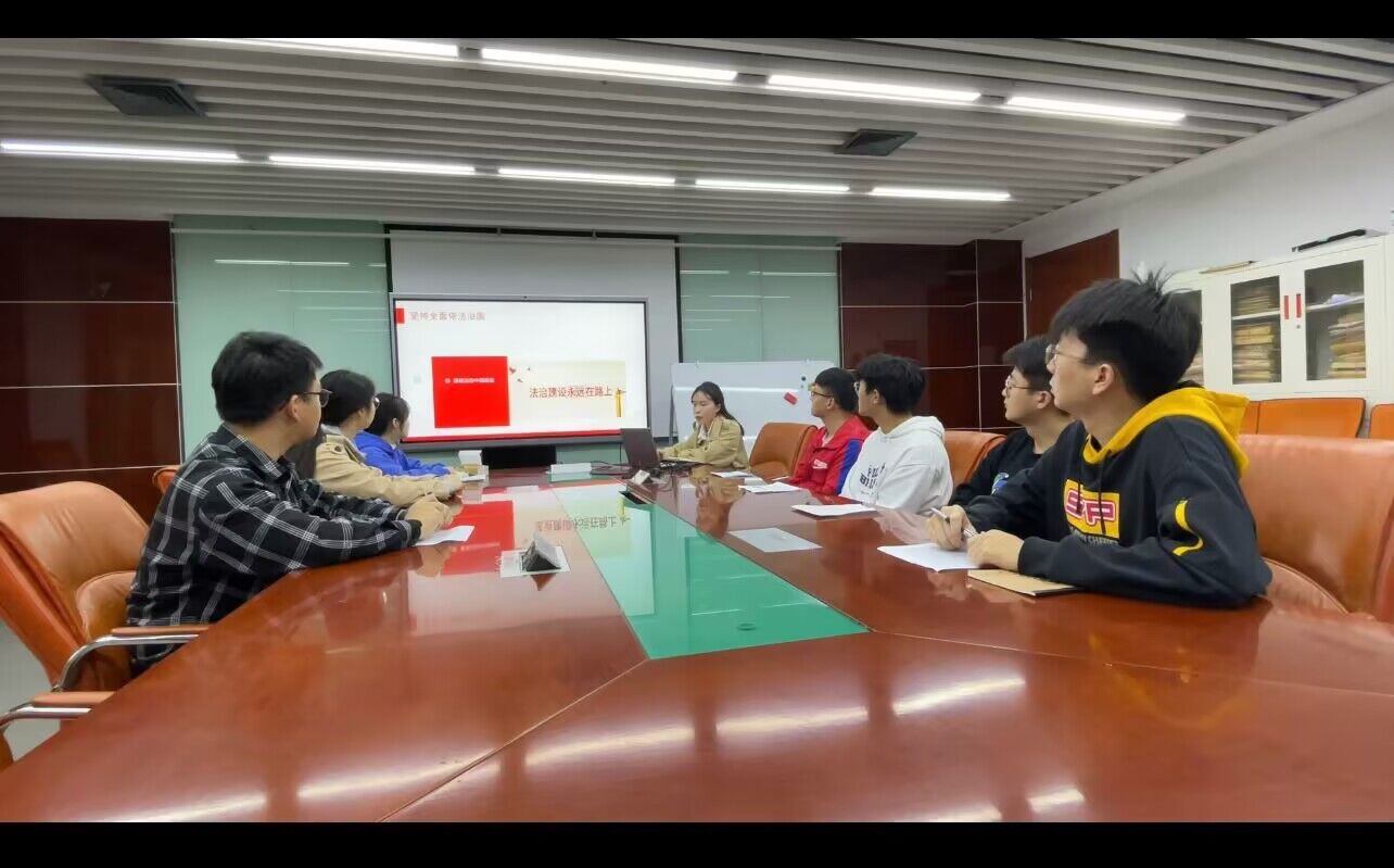 2021级研究生电子信息051班党支部在科教楼A座1104开展了“法治建设永远在路上”主题党日活动,支部全体党员参加会议。