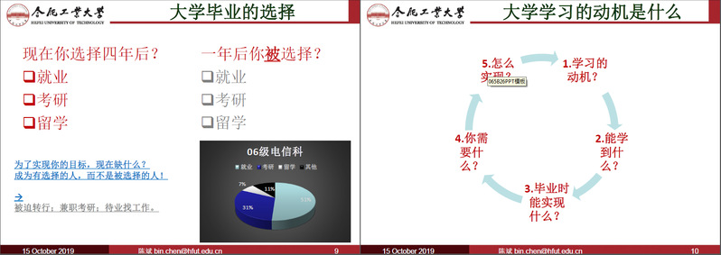 电子信息科学与技术专业,与参加座谈会的学生就读同一专业,恰好相差10届。陈老师在座谈开始就指出,这不仅是学生和老师间的交流,更是学弟学妹和学长的交流。座谈会围绕就业、考研、读博、出国等多个方向展开,陈斌老师通过自己毕业10年的经验以及7年海外学习工作的经历给学生做了详细的分享介绍。同时陈斌老师也分享了其大学本科校友们(06级电信科专业)的升学和就业情况,为同学提供了实实在在的经验。