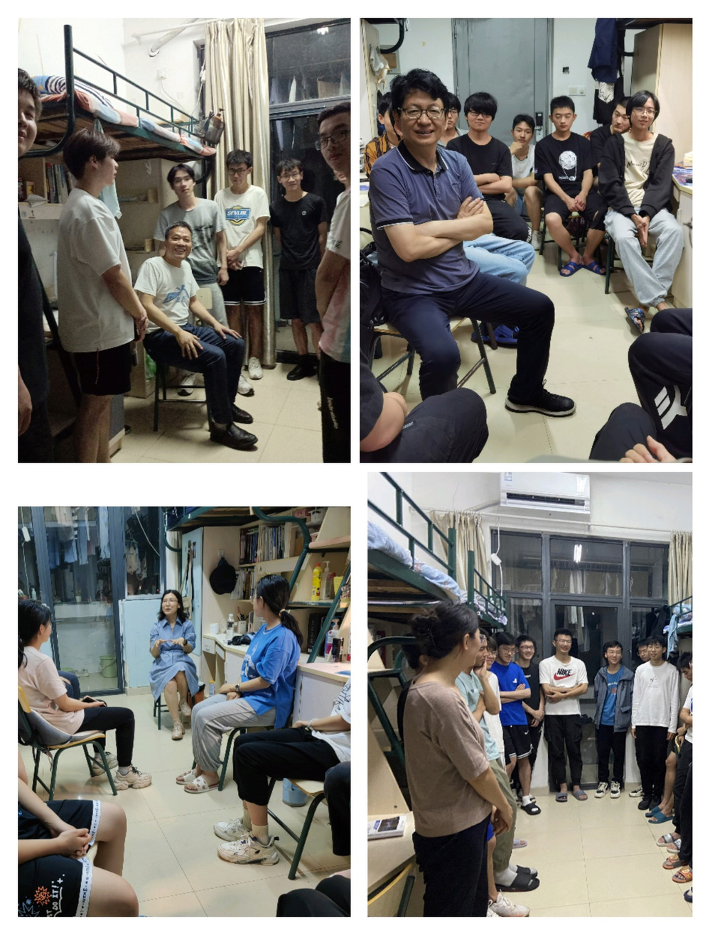 在学生宿舍,老师们与学生开展面对面的交流。学生们积极提出了各种问题,涵盖了他们的学习进展、课程安排、课外活动以及生活等各个方面,老师们耐心倾听,并针对每个问题提供了细致的解答和建议。同时,青年教师分享了自己在学生时代所遇到的挑战和经验,鼓励学生们树立积极的学习态度和自信心,同时指导他们如何合理规划时间和处理学业压力。此外,老师们还询问了学生们对课程的理解和学习进度,鼓励学生们积极参与课堂讨论和实验实践,多参加学校的学术讲座,提升综合素质。老师们并对一些实习和就业方向进行了介绍,为学生们未来的职业发展提供了一些指导和建议。