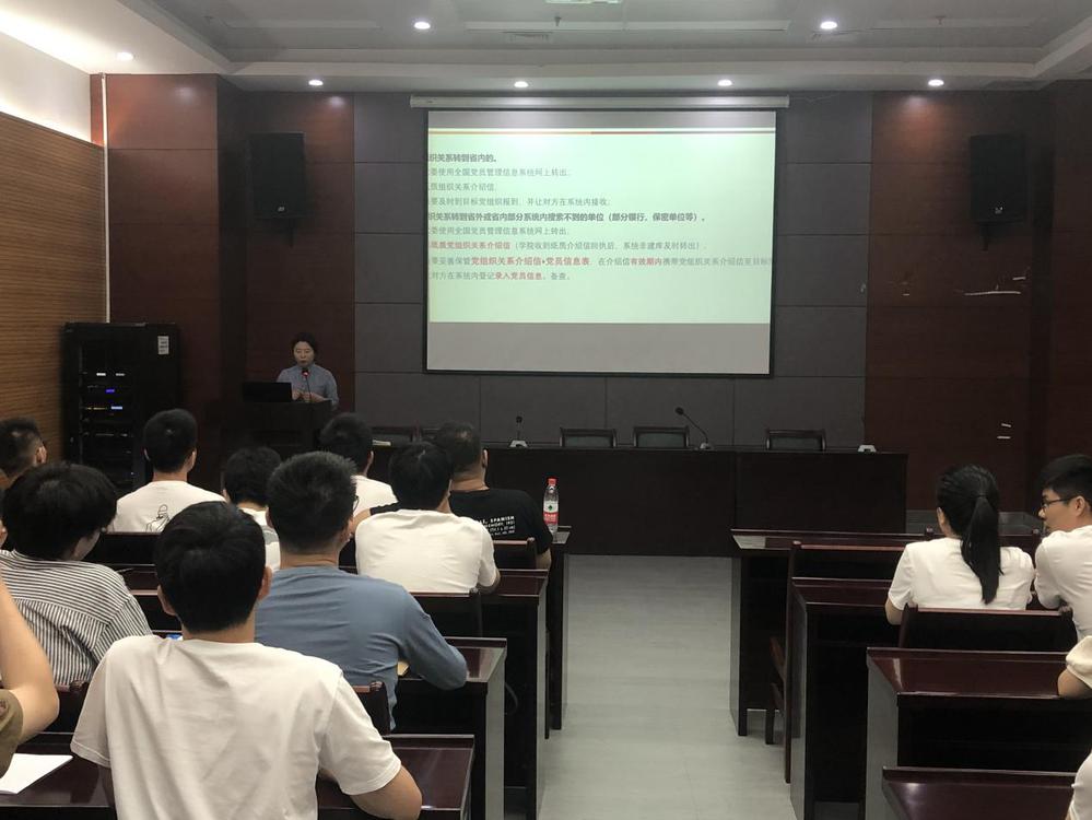 随后,毕业班辅导员黄晨就毕业生党员组织关系转接方面进行工作布置。黄老师就基本情况、办理流程及注意事项进行了详细讲解,并对毕业生党员提出的问题进行一一解答。