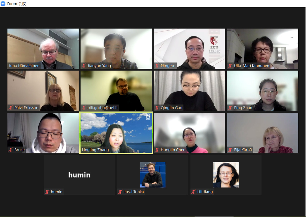 会议由合肥工业大学老人福祉科技实验室主任安宁教授和东芬兰大学社会科学系Juha Hämäläinen教授联合主持。Juha Hämäläinen教授首先介绍了会议议题及与会人员,随后安宁教授回顾了中芬合作的背景及基础。接下来,来自东芬兰大学的Juha Hämäläinen教授、Eija Kärnä教授、Olli Heikki Juhani Gröhn教授、Jussi Pekka Tohka教授、Päivi Eriksson教授、Ulla-Mari Kinnunen教授、Honglin Chen教授,来自合肥工业大学的安宁教授、谷雨教授、胡敏教授、赵萍教授、杨矫云副教授,来自哈佛大学的Lingling Zhang教授,来自上海天与养老服务有限公司的总裁办主任高青琳等分别介绍了各自的研究内容及在福祉科技领域的可能合作方向。最后,东芬兰大学的Honglin Chen教授介绍了中芬之间的科研与教学合作项目,与会专家就未来的合作意向进行了探讨。