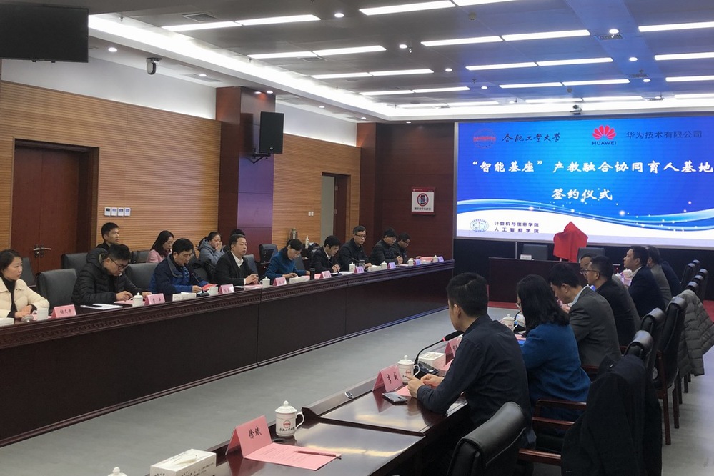 2020年12月25日上午,在合肥工业大学翡翠科教楼A座会议室,合肥工业大学—华为“智能基座”产教融合协同育人基地项目签约仪式隆重举行。华为技术有限公司副总裁郑叶来、华为上海研究所所长董庆阳、华为计算产品线高校合作总监李鹏等8位该项目主要负责人出席签约仪式。合肥工业大学党委副书记陈刚、本科生院院长陈翌庆、本科生院副院长黄云志、本科生院教务处副处长李平、风云体育在线投注平台