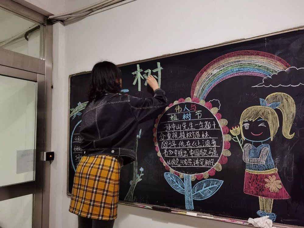 先锋志愿中心顺利完成了“植树节”主题黑板报的绘制活动,宣传植树节相关知识。