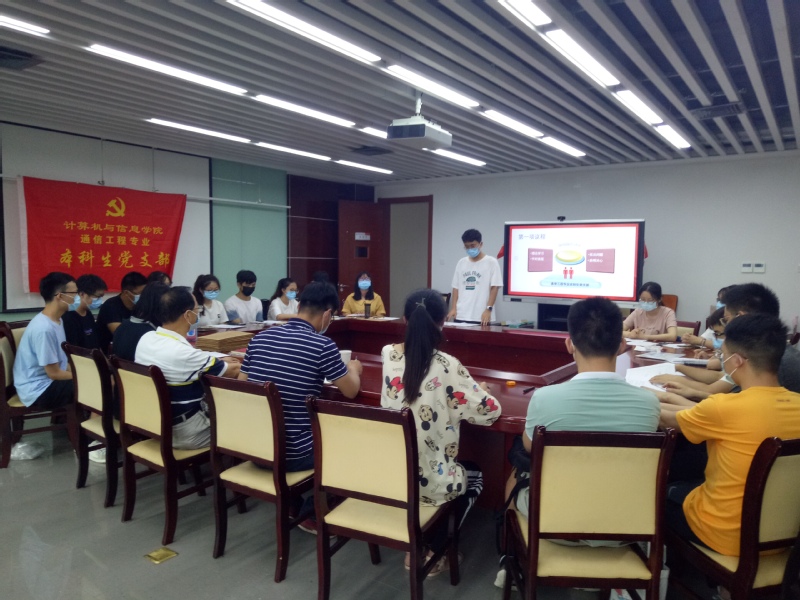 6月28日下午四点半,通信工程专业本科生党支部在科教楼A1106召开预备党员转正支部大会,学校党建组织员吴挺老师受邀参加支部大会,党支部书记陈曾珍主持会议。