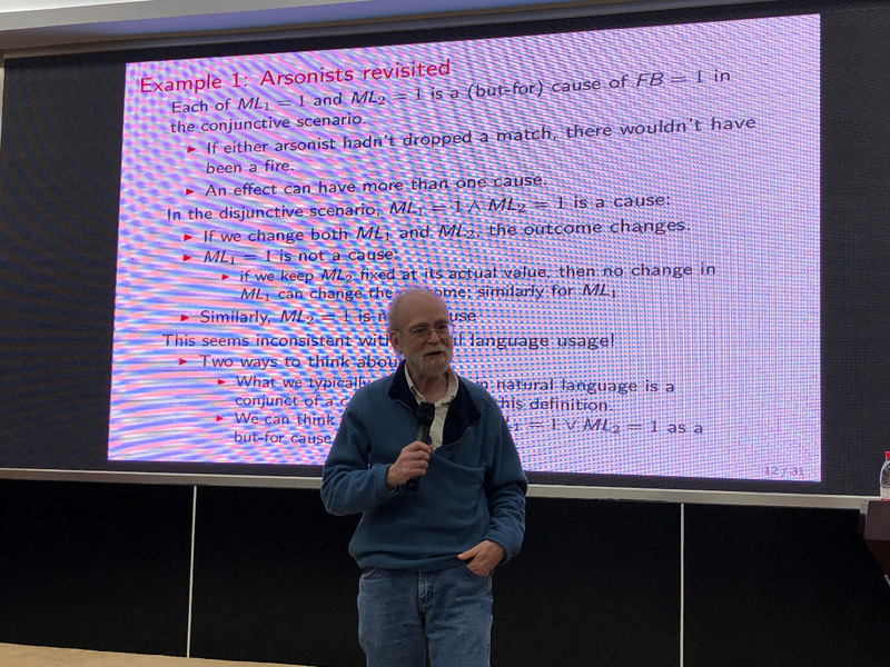 在报告中,Halpern教授首先介绍了因果关系的定义,分析了因果关系如何建模并应用于真实案例,并探讨了因果关系面临的问题及发展方向。Halper教授的报告引起了在座师生的浓厚兴趣,大家分别就自己感兴趣的问题与Halpern教授进行了热烈的交流互动。