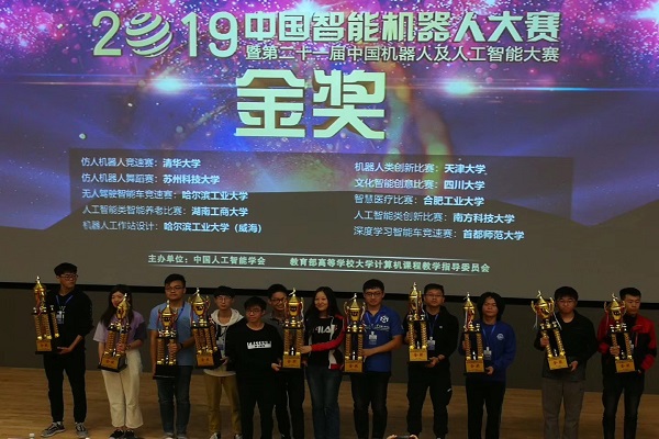 方宝富、张晶老师等多名教师担任教练,从暑期集训1个多月的30多名学子中选拔出8名队员参加了本次大赛,经过刻苦备战、积极调试,最后为学校、学院赢得了荣誉。除了获得本次比赛的金奖,还在智慧医疗比赛、智能交通比赛、仿人机器人类比赛障碍跑比赛、人工智能类创新比赛等4项子赛事中荣获一等奖。