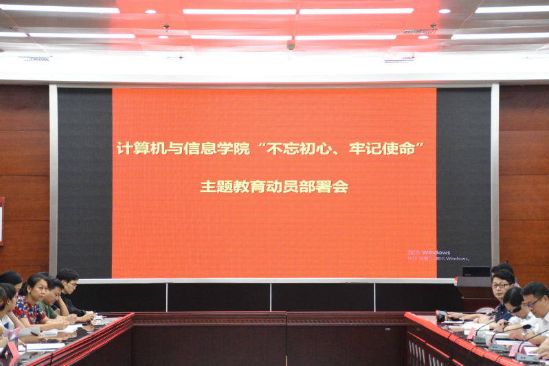 “不忘初心、牢记使命”主题教育动员部署会在翡翠科教楼A座一楼第四会议室召开。会议深入学习贯彻习近平总书记关于“不忘初心、牢记使命”主题教育的重要讲话精神,对学院主题教育进行动员和部署。院党委书记年永琪作动员部署讲话,校党委副书记陈刚出席会议并讲话,会议由院长汪萌主持。学院领导班子成员、党委委员、党支部书记、教师党员代表、学生党员代表参加了会议。