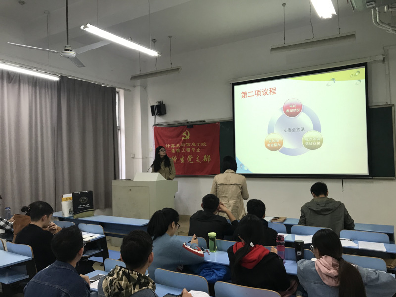 2018年11月底,学院通信工程专业本科生党支部、计算机科学与技术专业本科生党支部、电子信息工程专业本科生党支部、信息安全专业本科生党支部分别在六教106、八教202、六教101、科教楼A1106召开各党支部2018年下半年的党员发展大会,各党支部书记出席并主持大会。