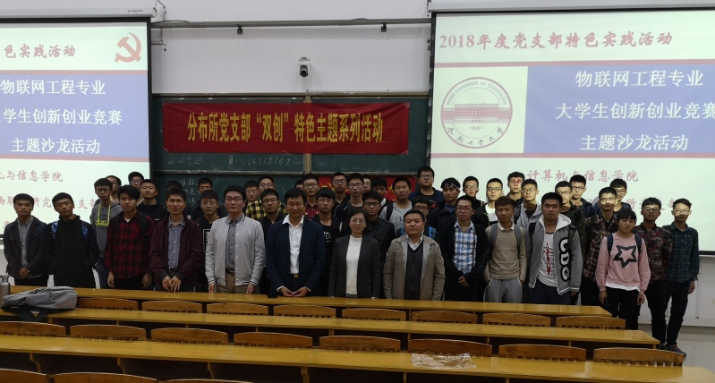 2018年10月24日下午,分布智能与物联网研究所党支部( 原“分布式控制研究所党支部”)组织党员教师赴宣城校区,面向2017和2018级物联网工程及相关专业200余名本科生开展“大学生创新创业竞赛”主题沙龙活动。此次活动不仅是对《教育部关于加快建设高水平本科教育全面提高人才培养能力的意见》文件精神的贯彻和落实,同时也是该党支部2018年初面向合肥校区计算机科学与技术专业本科生双创主题活动的延伸,旨在形成“以赛促学、竞学相长”的双创竞赛与人才培养的新格局与新模式。