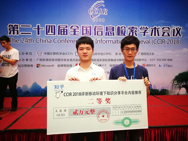 “媒体与推荐系统实验室(HFUT_MARS)”在由知乎公司、中国计算机学会信息检索专委会(CCIR)、清华大学计算机系联合主办的“移动环境下知识分享平台上的内容推荐竞赛(以下简称知乎在线推荐算法竞赛)”中获得第二名(本次比赛设一等奖1名,二等奖2名,三等奖4名),并受邀在大会上做算法交流报告。