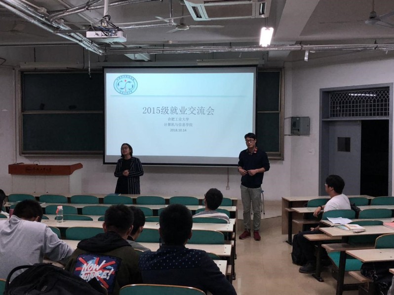2015级就业交流会于10月14日晚19:00在翠9教201成功举办,参与交流会的成员有15级辅导员陈曾珍、刘世国,还有15级部分未就业的同学。会议就当下计算机学院的就业形势及就业情况进行了交流与分享。