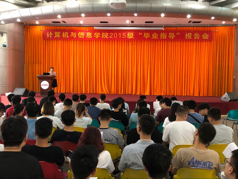 2015级“毕业指导”报告会在翡翠湖校区综合楼301召开,学院教务老师丁湘琳老师应邀作了毕业指导报告。15级辅导员陈曾珍老师和刘世国老师,2015级全体学生一起参与了报告会。