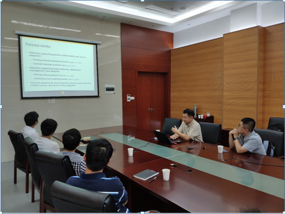 应合肥工业大学国家智慧养老国际科技合作基地杨矫云老师邀请,2018年7月3日下午15:00,美国密苏里大学Yi Shang教授在翡翠湖校区翡翠科教楼A座第一会议室做了题为“TigerAware: An Innovative Mobile Survey and Sensor Data Collection and Analytics System”的报告。学院相关教师、研究生、本科生聆听了报告。