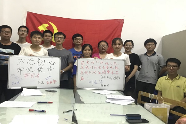 思e学社在翡翠湖校区开展纪念中国共产党成立97周年主题教育实践,学生党员代表和思e学社社员参与本次活动。