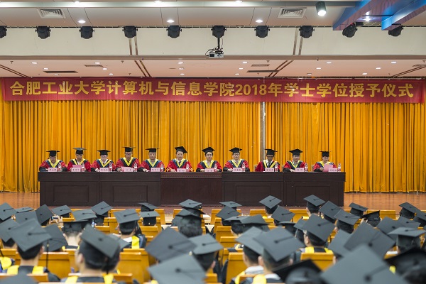 2018届本科生学士学位授予仪式在翡翠湖校区图书馆报告厅举行。 校党委副书记陈刚、学院负责同志及部分老师出席此次学位授予仪式。