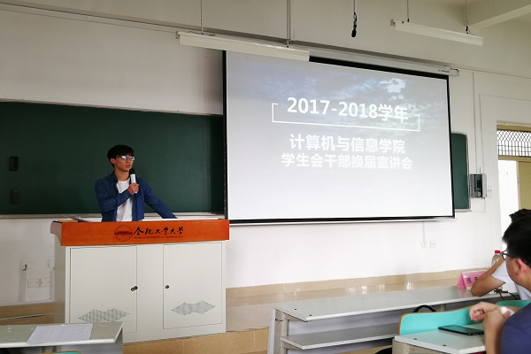 在翡翠湖校区举办2017-2018学年学生会换届宣讲会。学院相关负责老师、学生会全体成员出席本次会议。