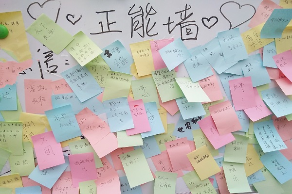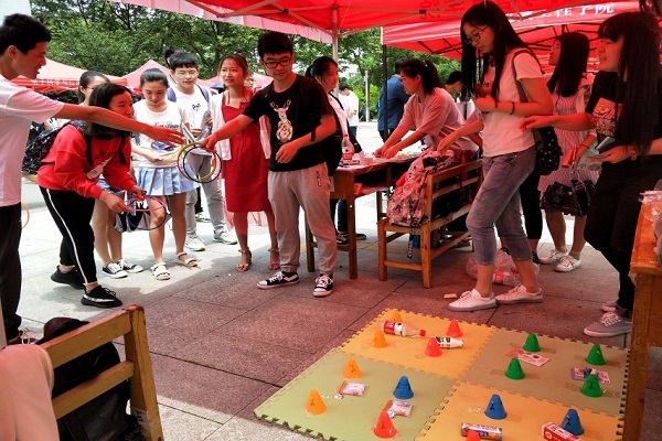 本次活动主要分为三个环节:正能墙、破负情绪、勇往直前。参与活动的同学在正能墙上写下充满正能量激励自己的的话语,正能墙被贴满,有“顺利毕业”“保研成功”“英语四六级裸考过”“不能贪睡”等等;飞镖刺破写着负面情绪的气球,让负面情绪像气球一样破灭;然后进入“勇往直前”环节,努力套中桩子即可获得对应的小礼品。活动现场气氛十分热烈,并且不时传来参与活动同学的笑声。本次活动,对同学们的心态有着一定的积极引导作用,不仅使大家得以在课余时间放松了自己,同时也在一定程度上缓解了自己的压力。