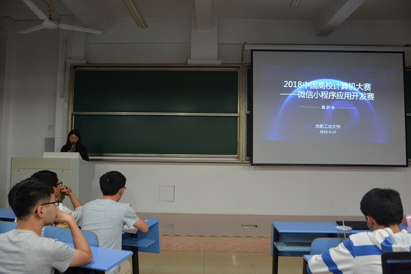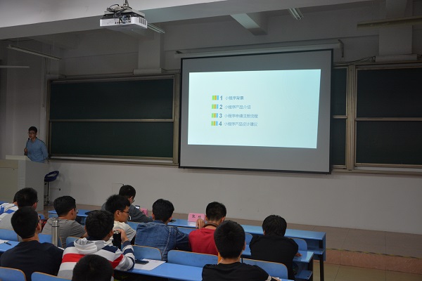 于4月27日在翡翠湖校区举办微信小程序应用开发赛宣讲会,微信小程序产品经理张维、微信商务经理朱世威及学院相关负责老师出席本次活动。