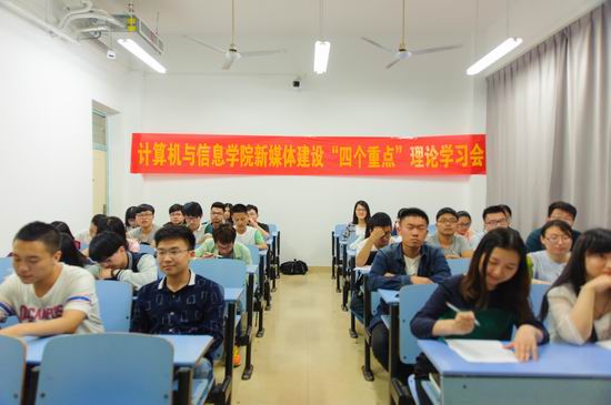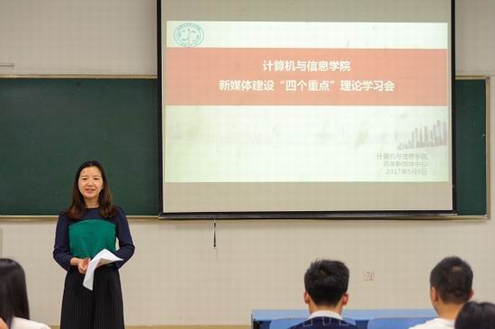 青年新媒体工作,2017年5月9日晚,学院在六教103举办新媒体建设“四个重点”理论学习会,青年新媒体中心指导老师和全体成员到场参加。