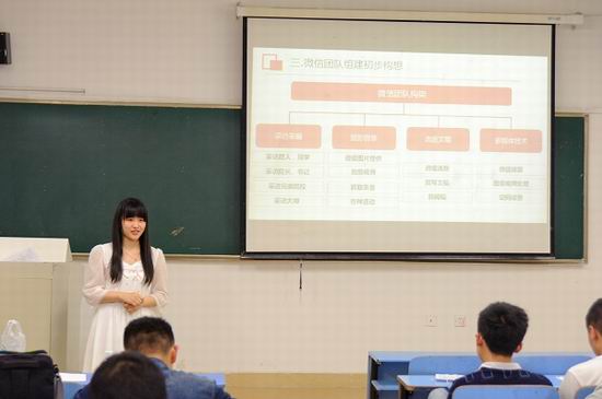 随后,新媒体中心负责同学姚玉洁总结了新媒体中心前期工作的成果,同时基于“四个重点”理论层面,对后期的工作改革提出了计划和构想,鼓励同学们积极更多热情投入到新媒体工作中,形成有利于培育和弘扬社会主义核心价值观的网络氛围。