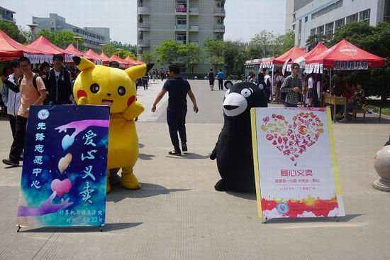 先锋志愿中心于4月22日在三食堂广场成功举办了“捐出一份爱心,奉献一份真情”为主题的爱心义卖活动。将获得的利润作为科技基金全额捐给翡翠小学。