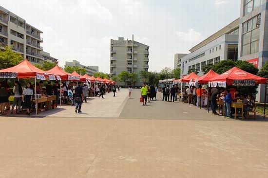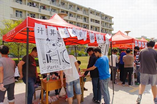 的10个班级,每个班级都有着自己的特色卖品:信安的太空糖和娃娃,计科的水果沙拉,通信的音响、键盘泥,电信工的优乐美……不仅物美价廉,而且还与同学们的日常生活息息相关,引来很多的消费者。除了来往的顾客们前来购买,每个班级之间也进行着商品交易,大家互相推销,气氛十分活跃。