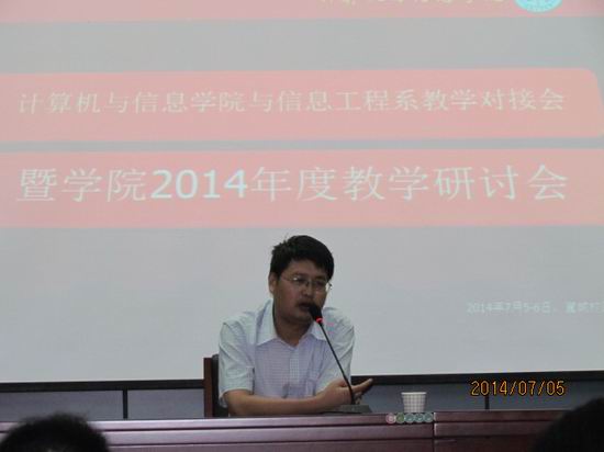 每年一次教学研讨会的优良传承,同时结合自己工作感悟对研讨会提出了期望和要求。宣城校区信息工程系周国祥主任讲话,对学院教学研讨会的召开表示祝贺,并表示本次会议安排的双方教学对接工作非常有必要也非常及时。副院长杨学志代表学院对会议的历史和本次会议的安排进行了介绍。李廉教授作了大会报告,从“建立核心课程体系,不断创新教学方法,发挥教授中心作用”三个方面提出了诸多建议和意见,为学院在人才培养方面进一步提升指明了方向。