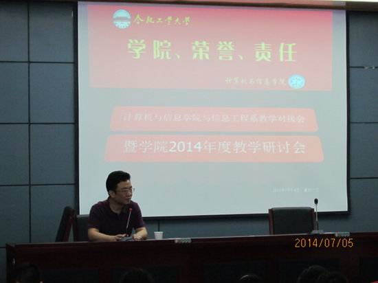 与信息工程系教学对接会暨学院2014年度教学研讨会7月5日在合肥工业大学宣城校区召开,会议主题分为“本科教学专场”和“研究生教学专场”重点讨论如何提升本科教学、研究生培养质量。校领导朱大勇副校长、刘晓平副校长、李廉教授出席会议,学院领导班子成员、各系主任、所长、教师代表、学院督导组成员和辅导员等参加会议。
