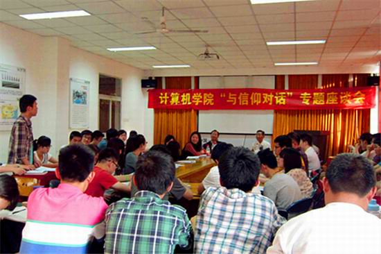 “与信仰对话,践行社会主义核心价值观”专题座谈会在翡翠湖校区举行。校关工委鲍良弼教授、王孝武教授和学院调研员吴挺书记应邀参加。大会由学院团委副书记黄晨老师主持。学院第7期青年马克思主义者工程培养班学员和第51期入党积极分子班学员参加了本次座谈会。