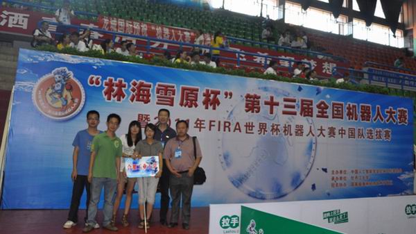 “林海雪原杯”第十三届全国机器人锦标赛暨2011年FIRA世界杯机器人大赛中国队选拔赛于7月24日-26日再在黑龙江省牡丹江市举行,来自北京大学、哈尔滨工业大学、华中科技大学、北京理工大学、四川大学等52所高校的500多名师生参加了该项赛事。我校HfutEngine代表队在王浩教授、方宝富老师带领下参加比赛,8名“引擎”仿人机器人在4名参赛队员精心调试下,经过顽强拼搏分别获得类人型阶梯跑比赛季军,获得类人型单人、双人舞蹈、类人型点球二等奖,获得类人型短跑、类人型1VS1击剑、类人型1vs1拳击、广播体操三等奖。中央电视台对我校队员羊志琼同学进行了采访。
