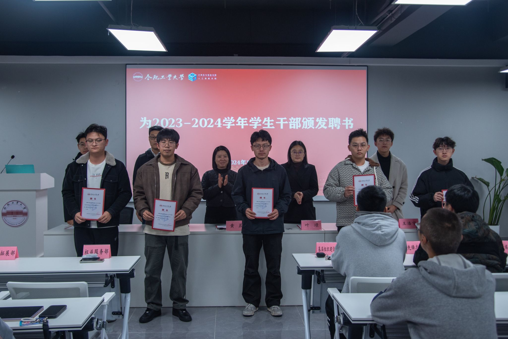 开班仪式在雄壮的国歌声中开始。学生团委副书记王浩宇回顾了学生会与团学组织2023-2024学年的工作,从制度建设、活动开展、成绩取得等方面做了工作汇报。与会的老师为2023-2024学年团学组织负责人颁发了聘书。团委书记黄晨在讲话中首先代表学院团委向参加本次培训的各位同学表示热烈的欢迎,并向全体学员提出四点希望和要求,一是明确职责定位,树立服务意识,始终把广大同学的利益放在首位,积极为广大同学服务。二是加强学习锻炼,提高综合素质,加强自身修养,树立正确的世界观、人生观和价值观,做到德才兼备。三是弘扬优良传统,传递正能量,关心集体、团结同志、勇于担当、敢于负责、锐意创新、勇创佳绩。四是端正学习态度,完成学业任务,注重课堂学习效果的提高。