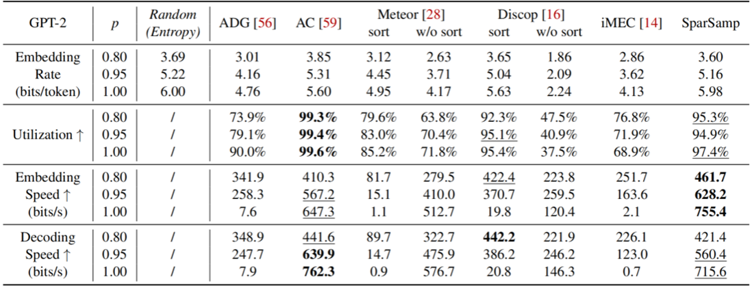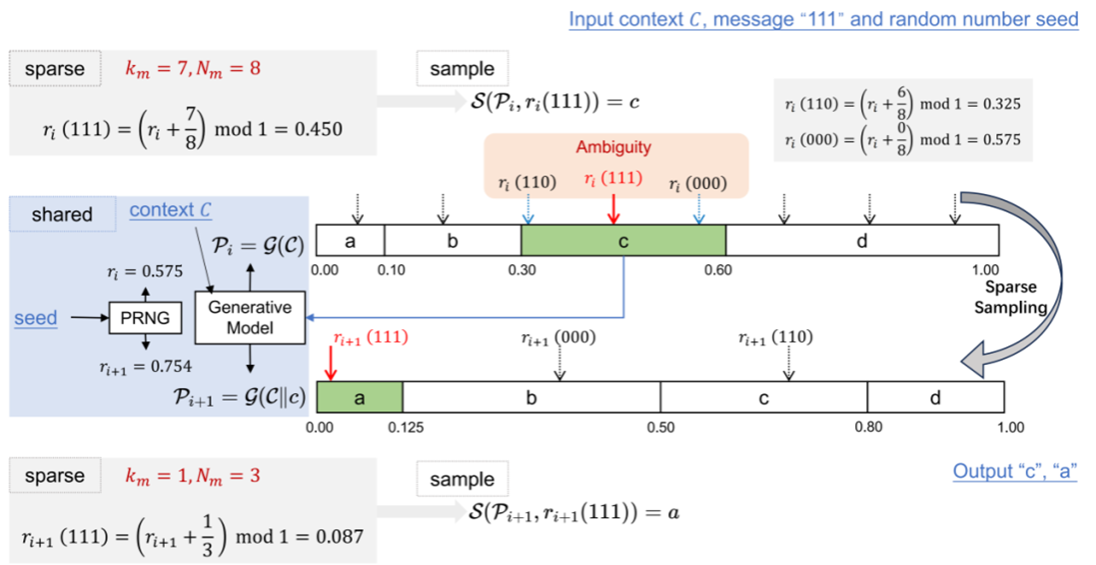 Abstract: Steganography embeds confidential data within seemingly innocuous communications. Provable security in steganography, a long-sought goal, has become feasible with deep generative models. However, existing methods face a critical trade-off between security and efficiency. This paper introduces SparSamp, an efficient provably secure steganography method based on sparse sampling. SparSamp embeds messages by combining them with pseudo-random numbers to obtain message-derived random numbers for sampling. It enhances extraction accuracy and embedding capacity by increasing the sampling intervals and making the sampling process sparse. SparSamp preserves the original probability distribution of the generative model, thus ensuring security. It introduces only O(1) additional complexity per sampling step, enabling the fastest embedding speed without compromising generation speed. SparSamp is designed to be plug-and-play; message embedding can be achieved by simply replacing the sampling component of an existing generative model with SparSamp. We implemented SparSamp in text, image, and audio generation models. It can achieve embedding speeds of up to 755 bits/second with GPT-2, 5046 bits/second with DDPM, and 9,223 bits/second with WaveRNN.